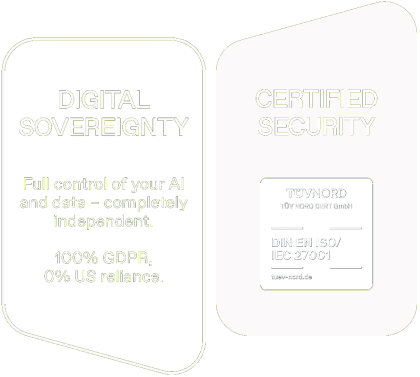 ISO 27001 certified security. Full digital sovereignty. Your AI, your data, your control. On any infrastructure, with any model.