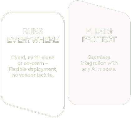 Real-time protection that accelerates AI adoption. By decoupling security from deployment, we ensure you get the best of both worlds: speed and safety with zero deployment friction. Security that enables, not blocks, your AI initiatives.